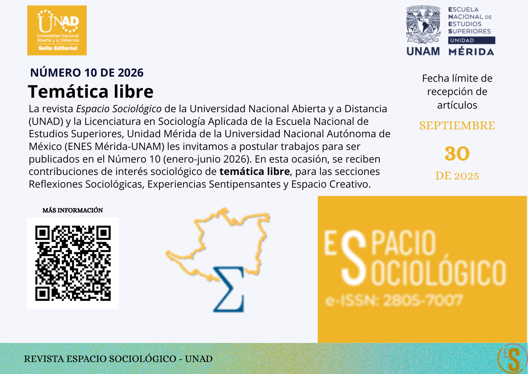 La  Revista Formativa Espacio Sociológico, aporta en la gestión de conocimiento propio, motivando a  docentes, investigadores,  estudiantes y organizaciones sociales, para compartir artículos de investigación, reflexión y coyuntura de temas sociales en diversos contextos. La Revista también es un espacio para compartir procesos creativos y expresiones culturales.